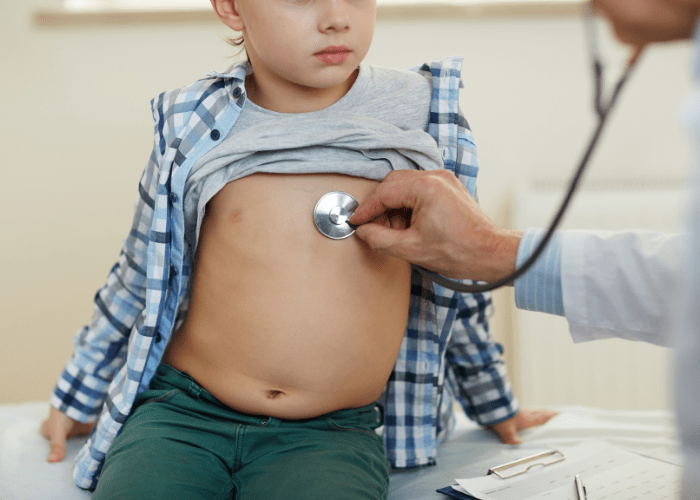 - Difficulty Breathing - if your child is having difficulty breathing you should seek medical care. If it appears as though the child’s breastbone is caving in between breaths, or the soft tissues around their neck and between their ribs is being sucked in you should take your child to the nearest hospital emergency room, or call 000.