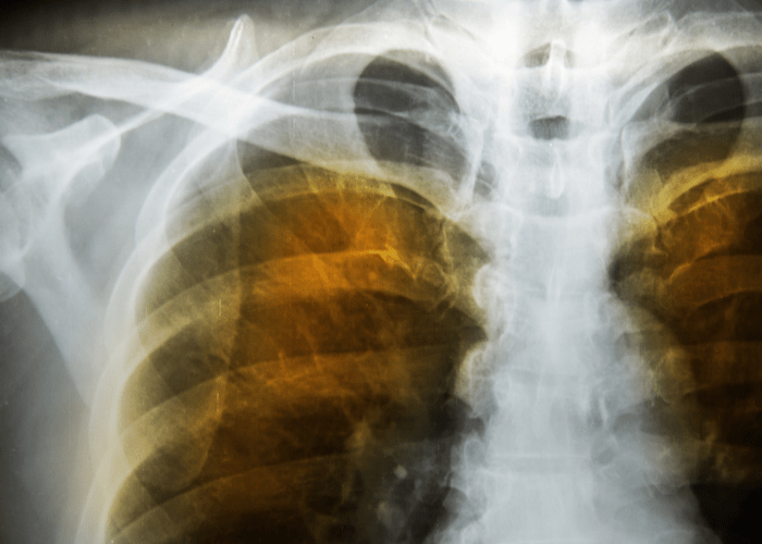 During the later stages of emphysema, people may also exhibit an expanded “barrel” chest. This is due to the fact that the lungs are always partially inflated due to air trapped by the damaged alveoli, so the ribcage stays partially expanded, like you’ve just taken a breath, all the time.