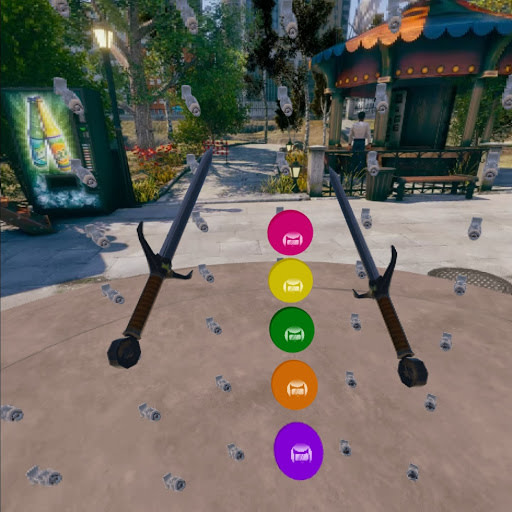 Balloon Blast - active cervical spine range of movement assessment and rehabilitation. This game sees patients bursting balloons with a sweep of a sword. Accuracy and velocity of swings, as well as the speed at which the balloons are burst increases an overall point score, challenging the patient to try and better their own high score each time they play/exercise.