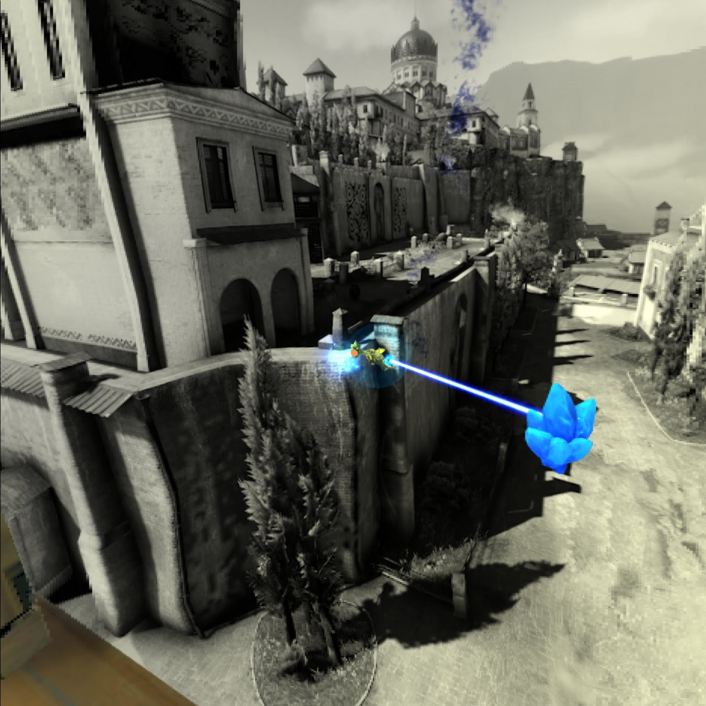 Rotate - a neck range of motion and smoothness of motion assessment and rehabilitation game. Patients use head and neck movements to guide a small dragon around a virtual environment to collect blue orbs.