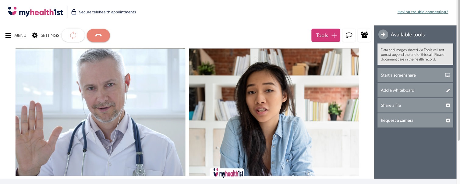 Once you have finished with the appointment, or if you wish to end the call, you can hang up from the call options menu next to the tools button to the top right of the screen, or by using the phone handset icon at the top right.