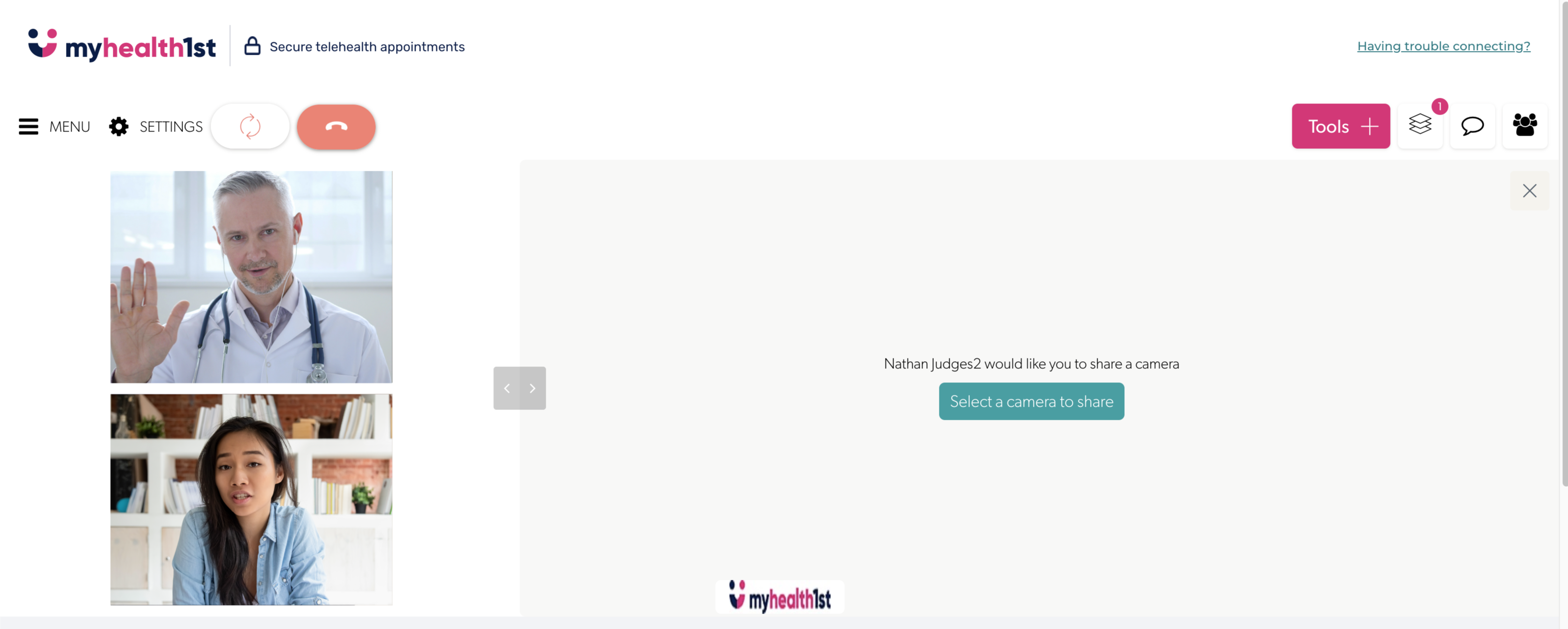 Once you have finished with the appointment, or if you wish to end the call, you can hang up from the call options menu next to the tools button to the top right of the screen, or by using the phone handset icon at the top right.