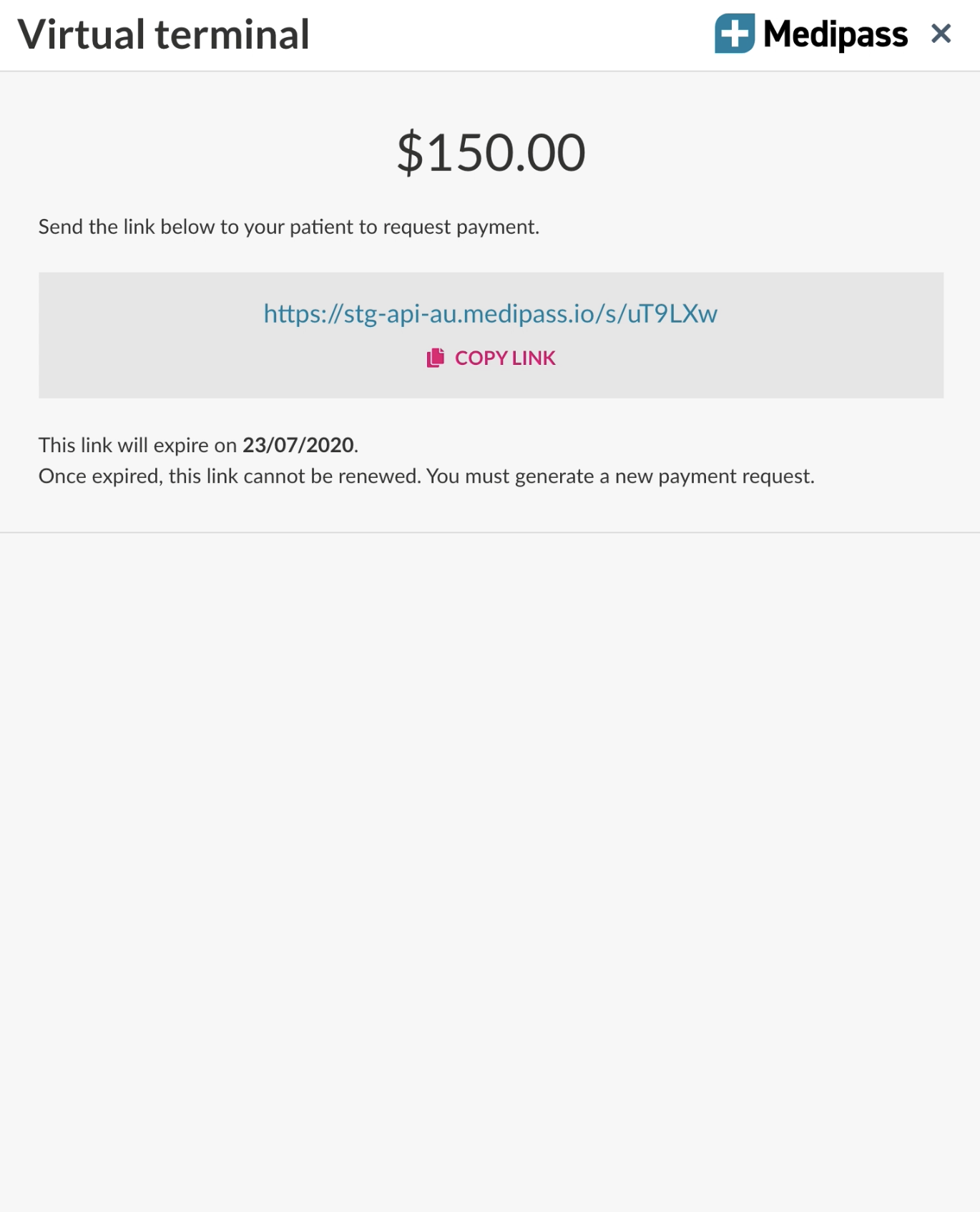 If you want to process a private billing, choose Card Payments. Clicking on Card Payments takes you to a Medipass interface. You have 3 options to process the payment: