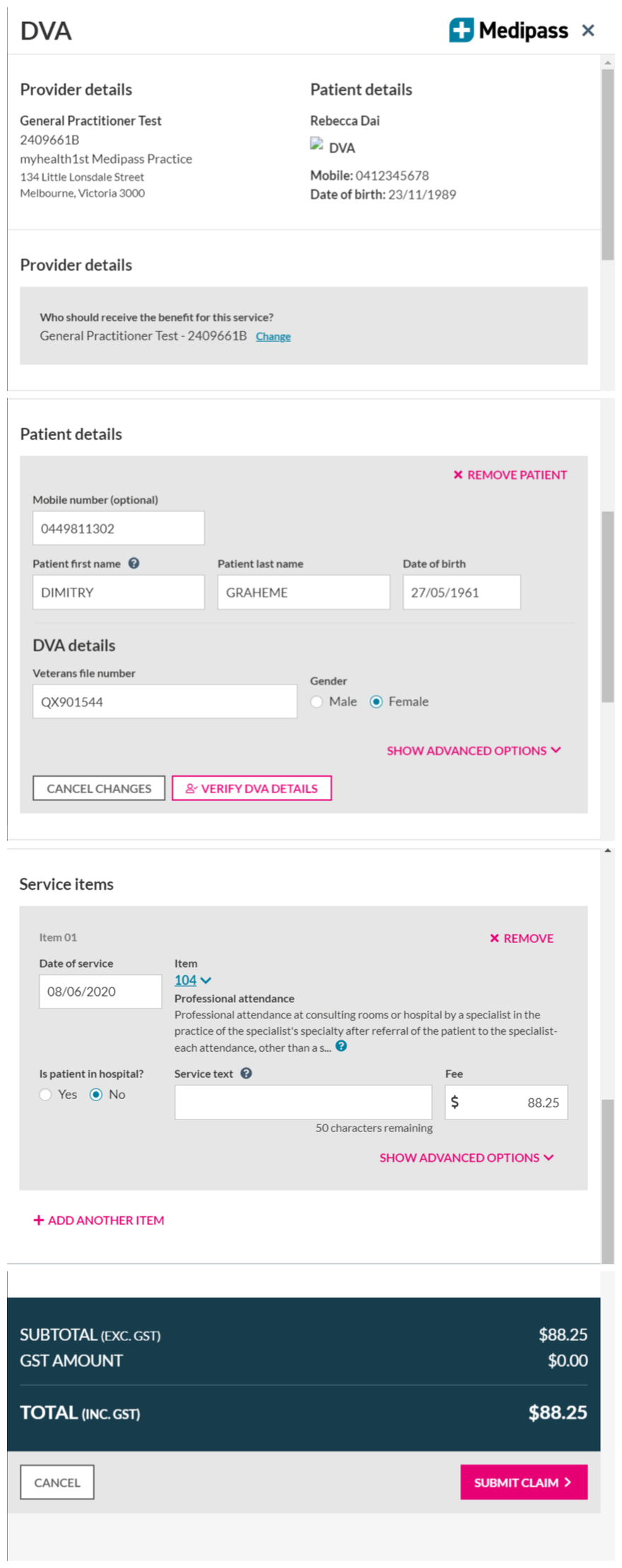 EasyHealthPayments also enables you to raise claims with the Department of Veterans' Affairs (DVA). The payment process is quick and easy. You just need to add the patients details including the veterans file number.