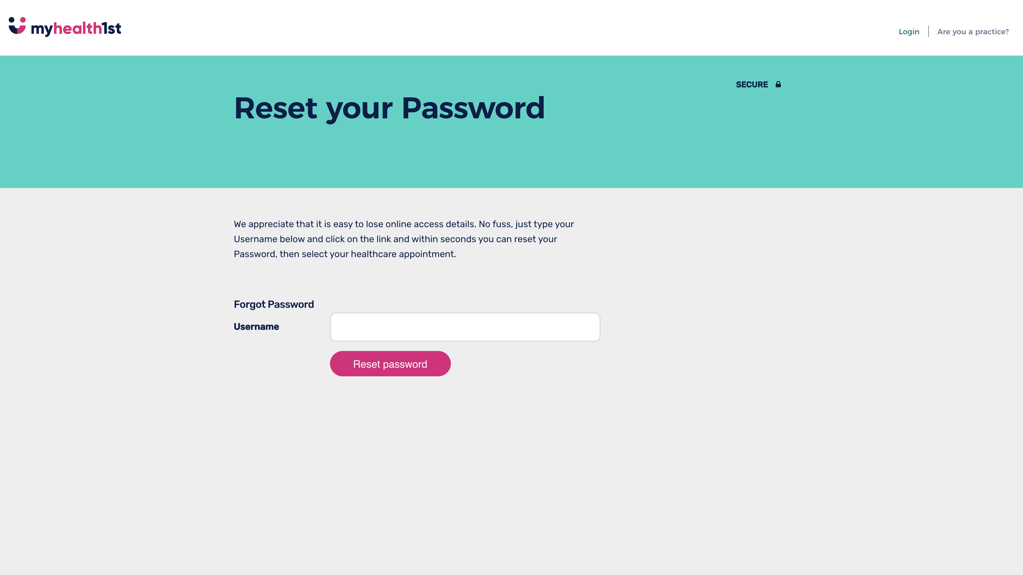 This will take you to a page on which you can reset your password. Enter your MyHealth1st username in the field and click the “Reset Password” button.