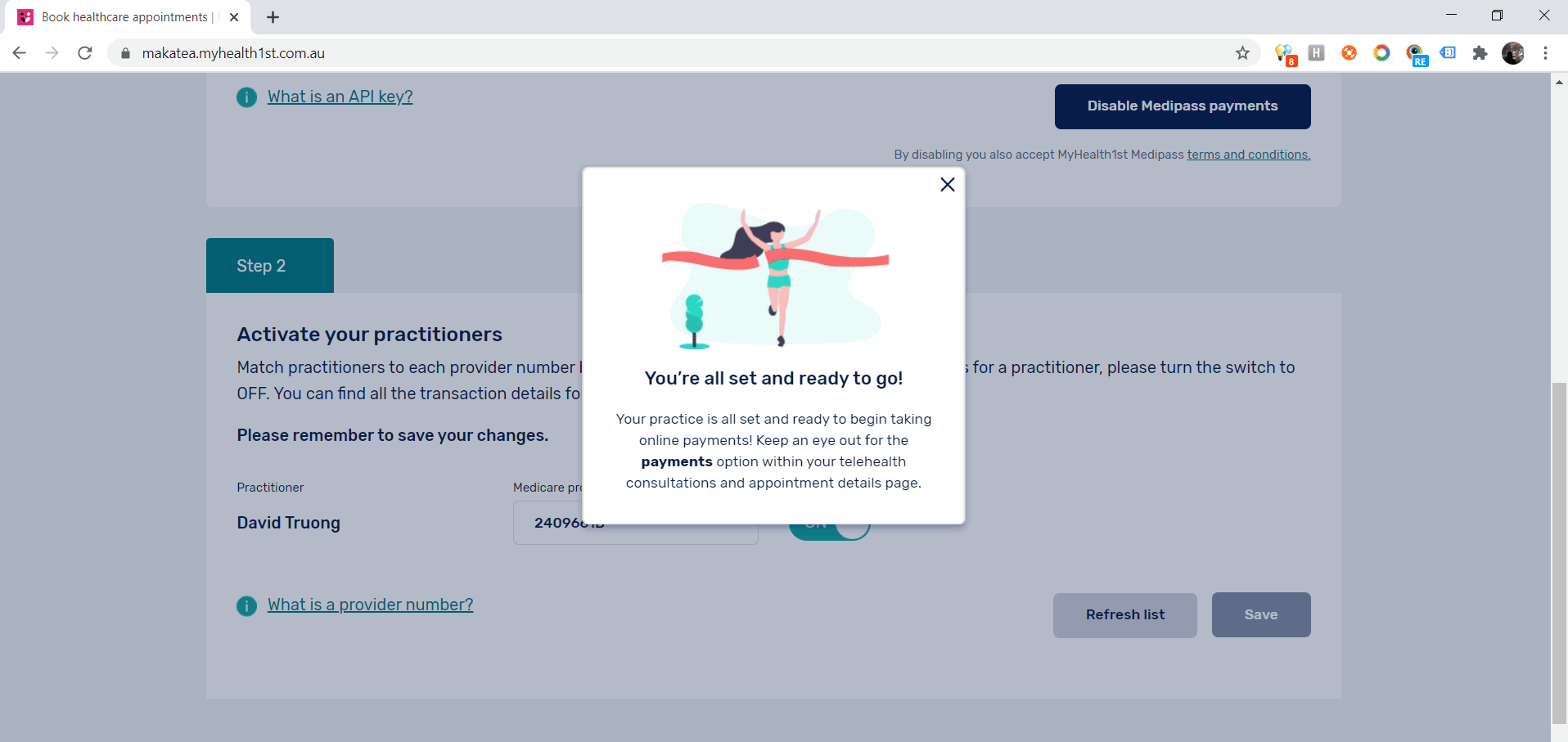 Once you have completed these steps your practice will be able to take credit card payments and make Medicare/DVA claims online.