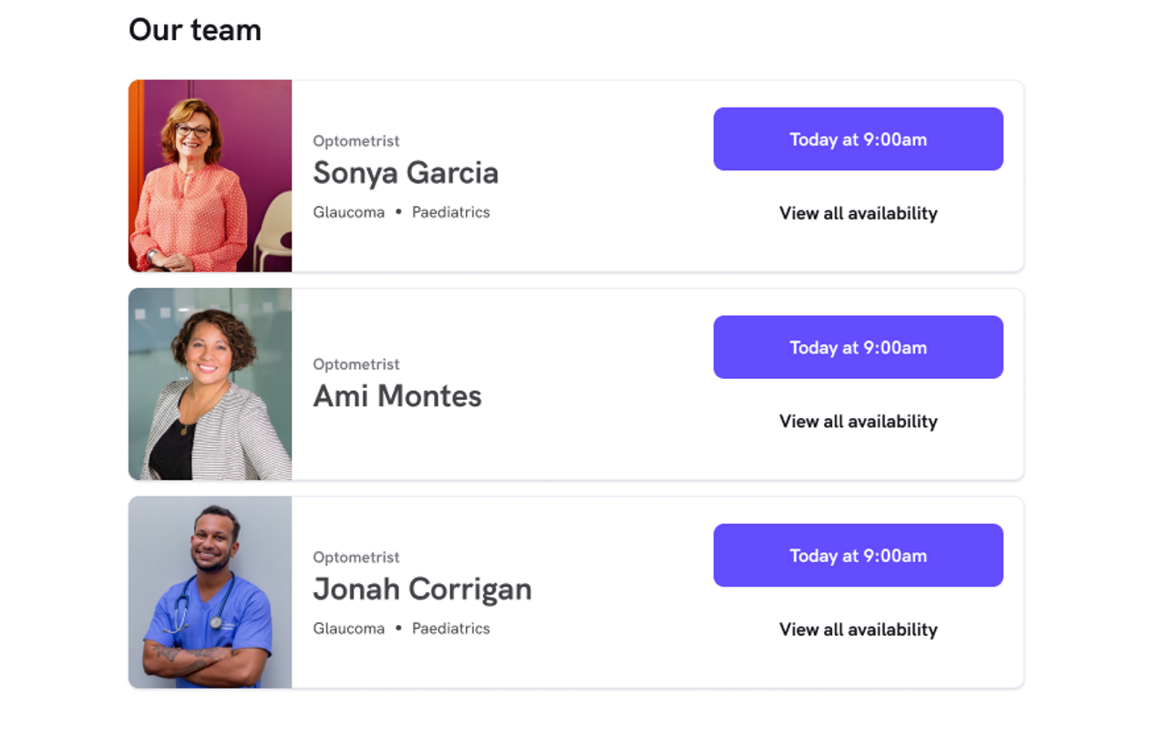 This section shows a complete list of the healthcare workers operating out of your practice.Using profile photos for practitioners, rather than company logos or leaving the image blank is extremely important for converting potential patients into bookings. Patients are around four times more likely to book an appointment with a practitioner with a profile photo than one without.