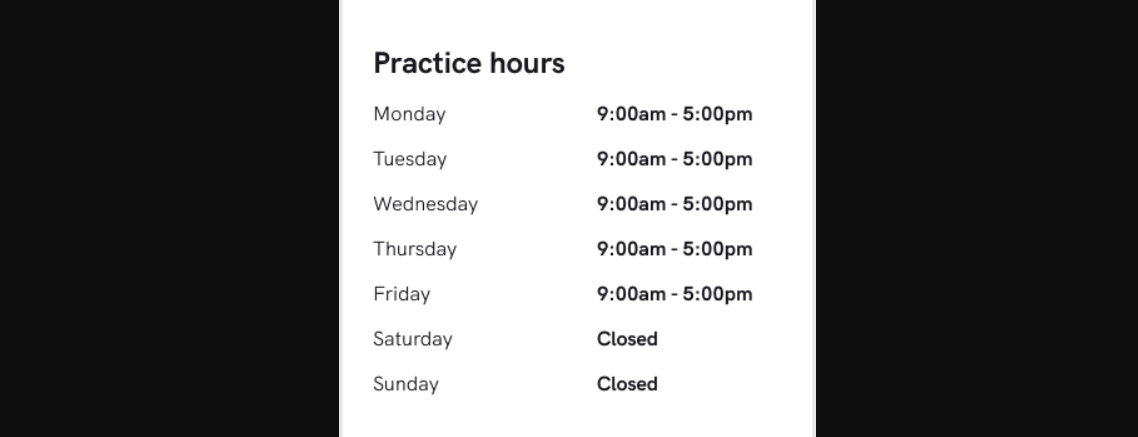 Ensuring that your practice hours are up to date as it lets potential patients know a general window of when they can expect to book an appointment. If there are any changes to your opening hours you should immediately update your practice profile to let new patients know.